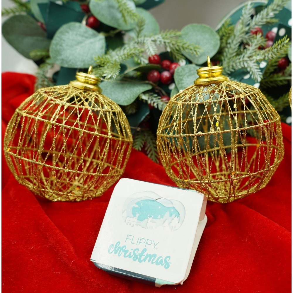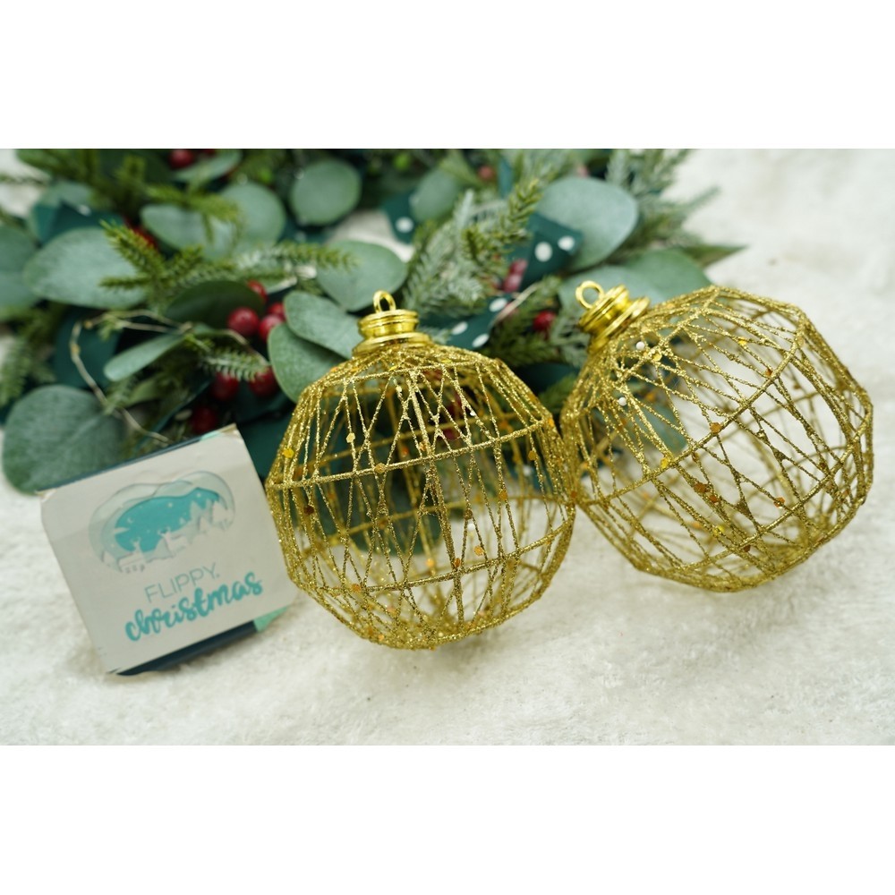 Set de 4 ornamente de brad, Embo, de tip Glob, Auriu, cu ø de 8 cm, din metal, cu finisaj sclipitor , cutie 8 cm adancime x 32 cm lungime x 8 cm inaltime
